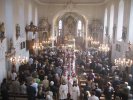 Schon durch den festlichen Blumenschmuck werden unsere Blicke gefangen, wenn wir den Kirchenraum betreten. Nach dem großen Einzug mit den manchmal bis zu sechzig, teils erwachsenen Ministranten werden unsere Blicke zum Altar gelenkt. Der Priester beräuchert den Altar, um zu zeigen, wer der Herr ist: es ist Christus, um den wir uns versammeln. Chor, Orgel, Gemeinde und Altar gehen einfühlsam auf einander ein. Das Miteinander von Wort und Musik muss einfach stimmen.
